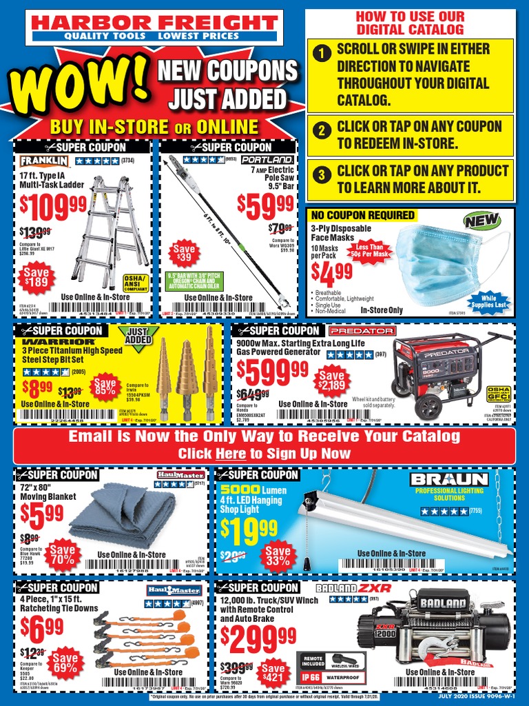 Harbor Freight Coupons Hf Coupons Hft Coupons Free Coupons 25 Off Coupons 20 Off Coupons And Liquidation Coupons Harbor Freight Coupons For Ios from www.hfcoupons.com See the coupon for details.compare our price of $499.99 to tomahawk at $1169.99 (model number: Codes is guaranteed to work online…. Harbor freight tools coupon database. Buy the central machinery 6.5 hp plate compactor (item 69738) for $499.99 with coupon code 36138314, valid through march 31, 2020. You can get the best discount of up to 69% off. Save on harbor freight's customer favorites with our super coupons. Get our best deals and latest news delivered straight to you. Google search for a valid coupon.